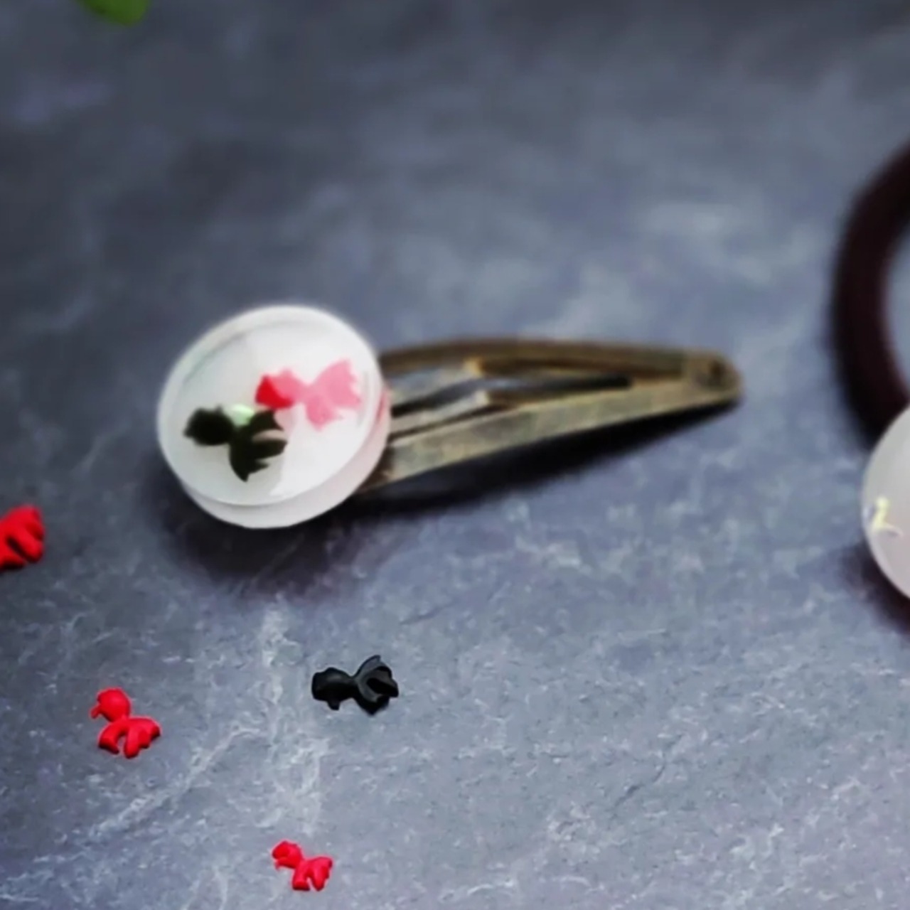 手作りの小さな小さな金魚を閉じ込めた パッチンどめ